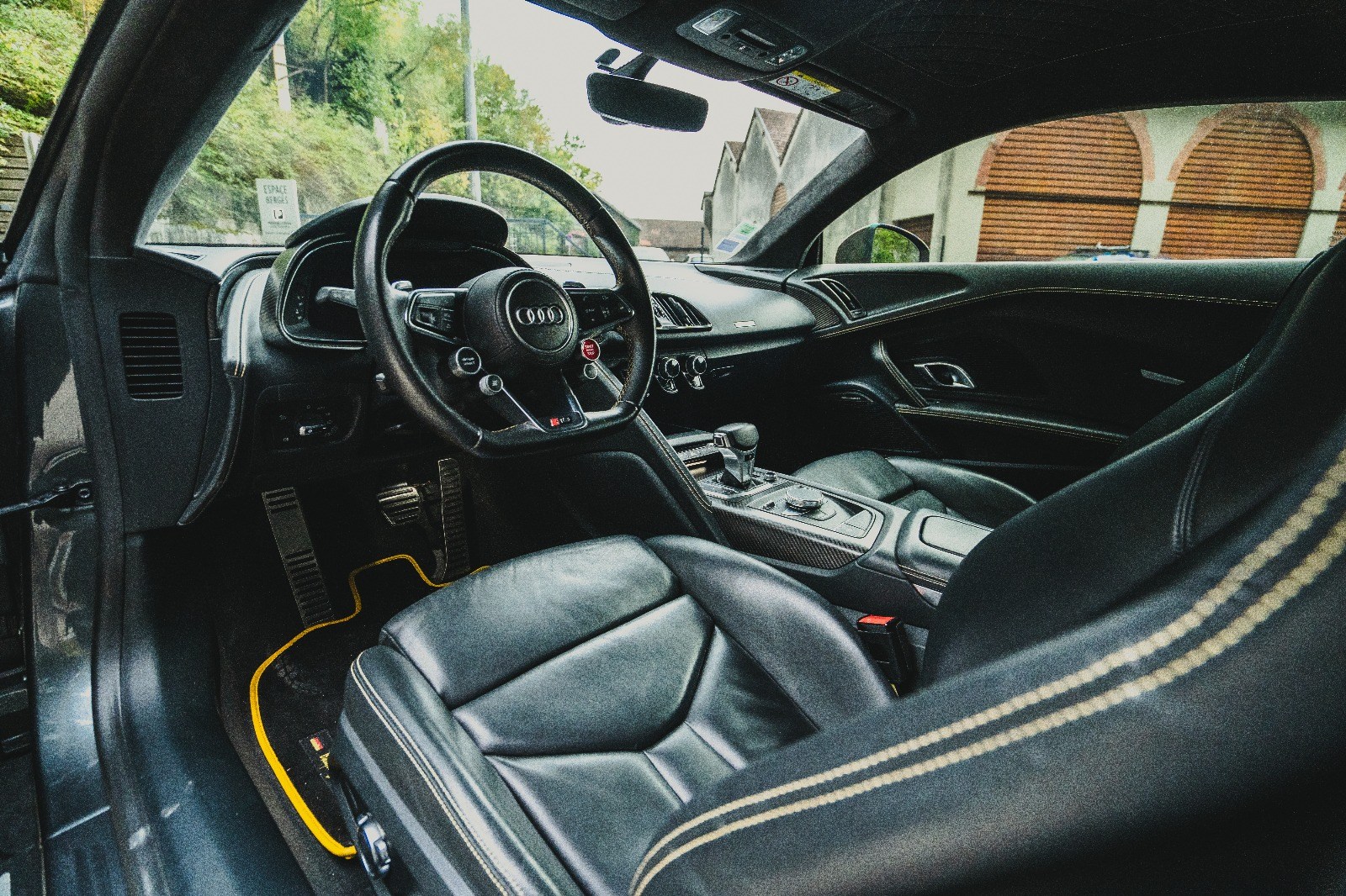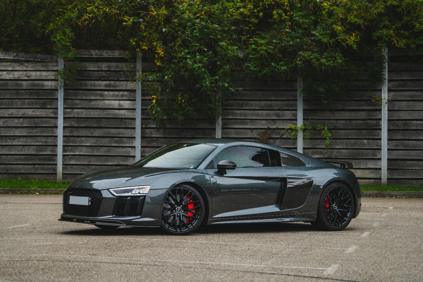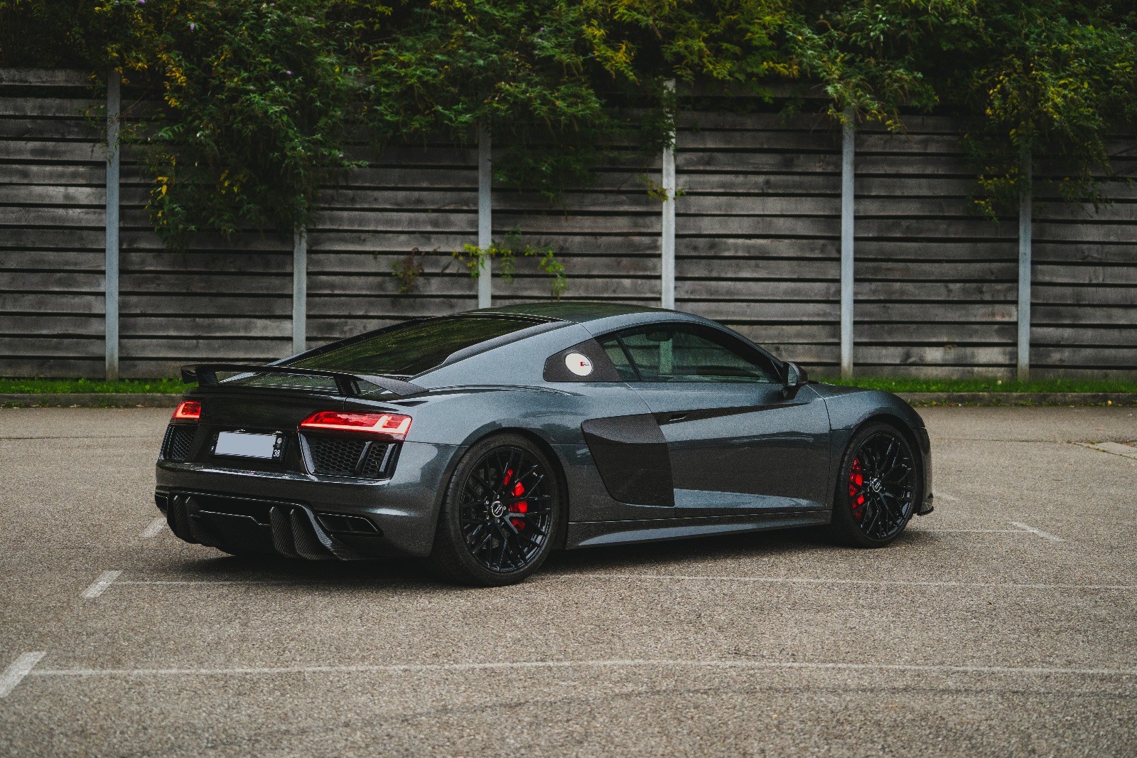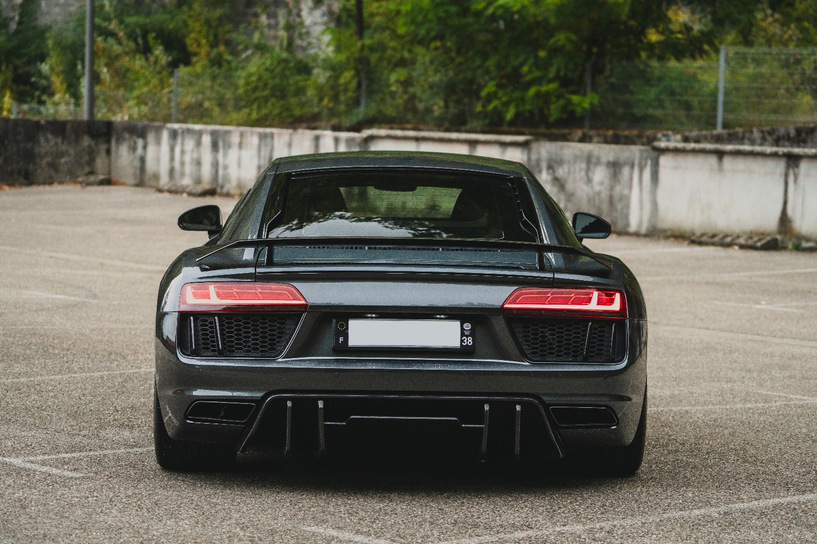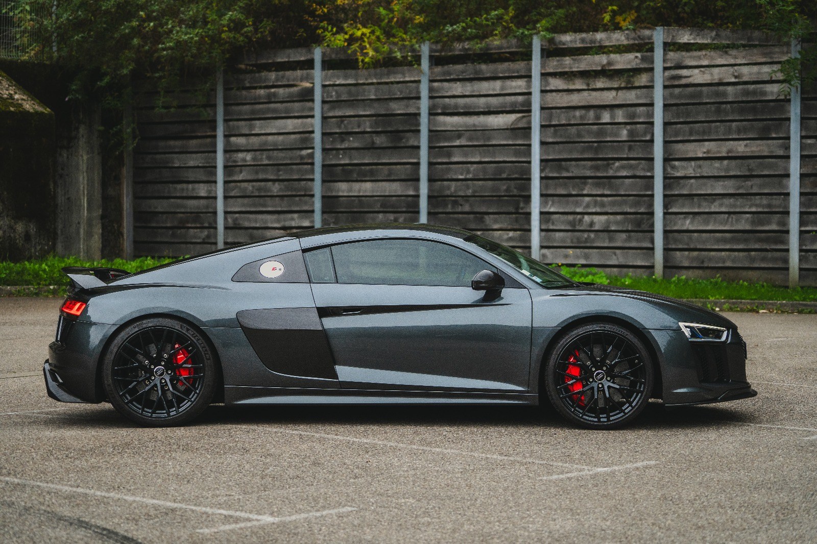 – Pack extérieur Carbone brillant Audi Exclusive comprenant : lame avant, coques de rétroviseurs, sides-blades, aileron, diffuseur arrière et baie moteur