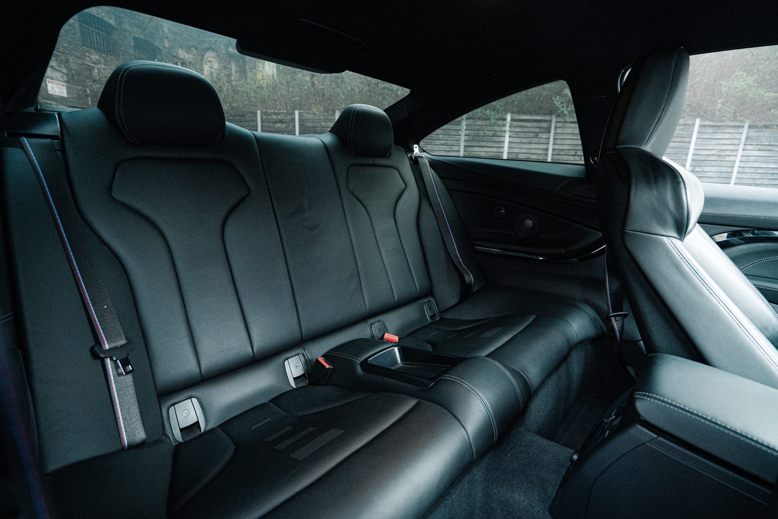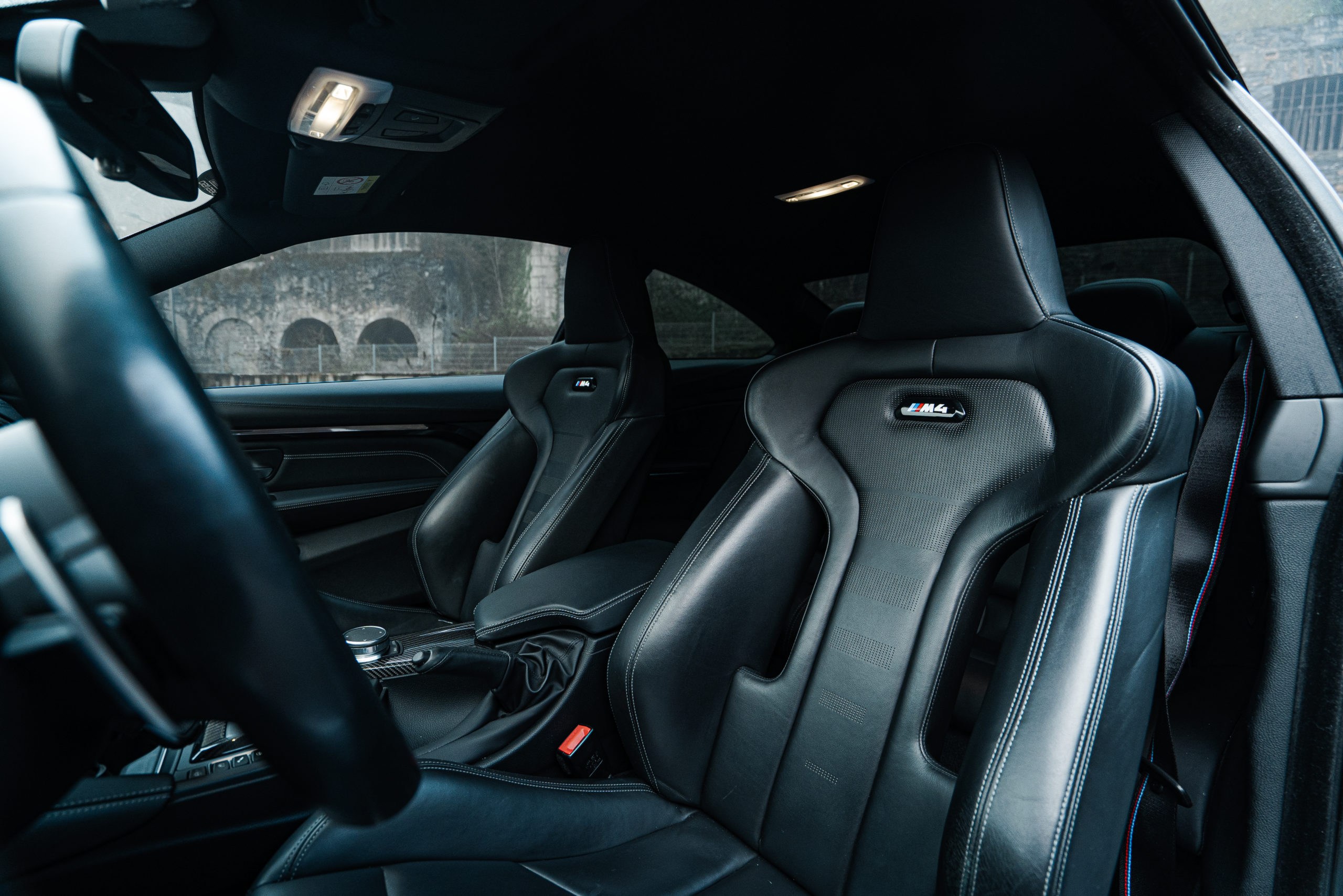 – Ceintures de sécurité noires avec liseré aux couleurs M : 310 €